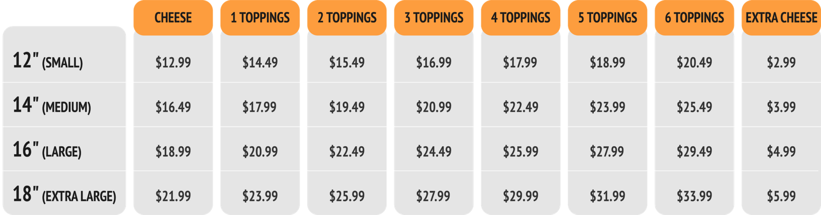 Meat Lovers$18.99 | $23.99 | $27.99 |$31.99